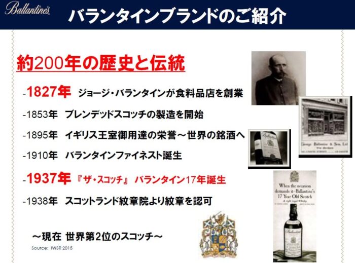 ・約200年の歴史があり、数々の受賞歴を持つバランタイン