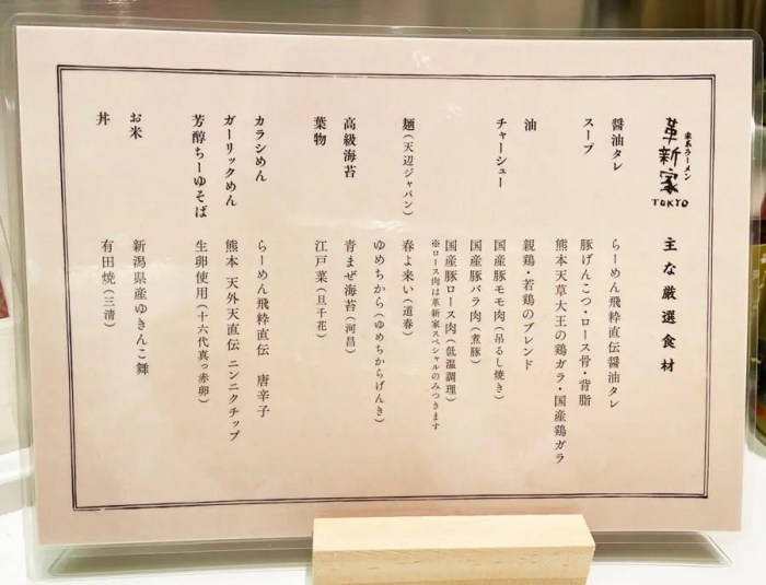 そのうちの1店舗は、マイルドな豚⾻醤油をベースとした家系ラーメンを提供する家系ラーメン ⾰新家TOKYO。
