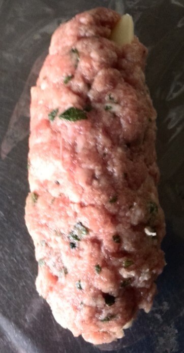 もう1つは小さく切って、ソーセージと一緒に成形した。