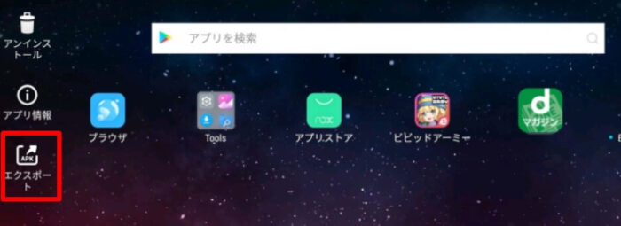 先ほど手順の中で「ESファイルエクスプローラーで「dマガジン.apk」というバックアップファイルを取得。」と書いたが、NoxPlayerでは不要。