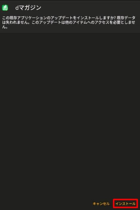 4:キンドルタブレット上で「dマガジン.apk」を実行してインストール