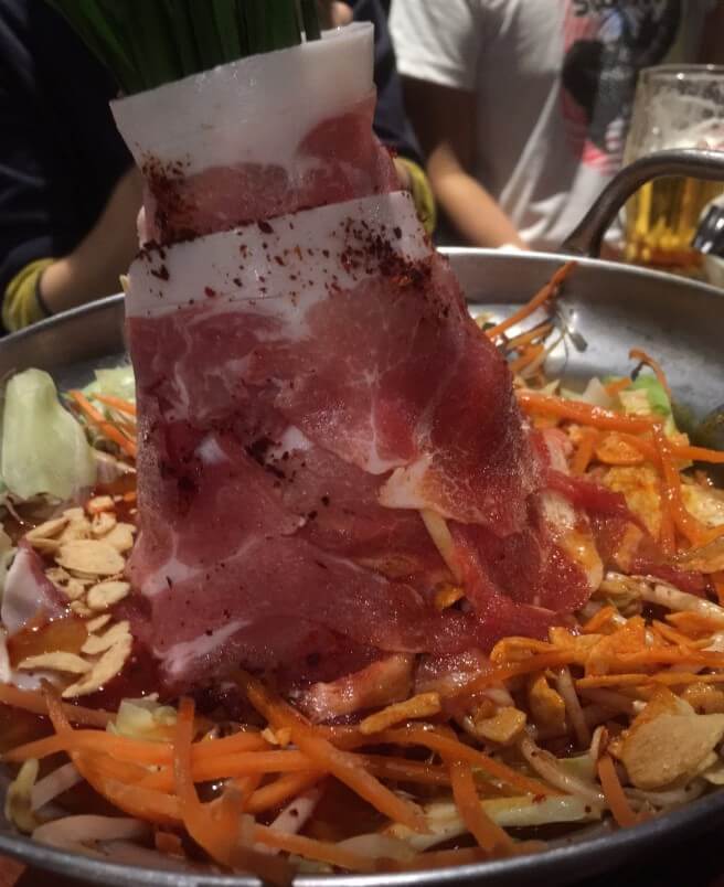 さらには、こんな感じでそびえ立つ肉の鍋も。