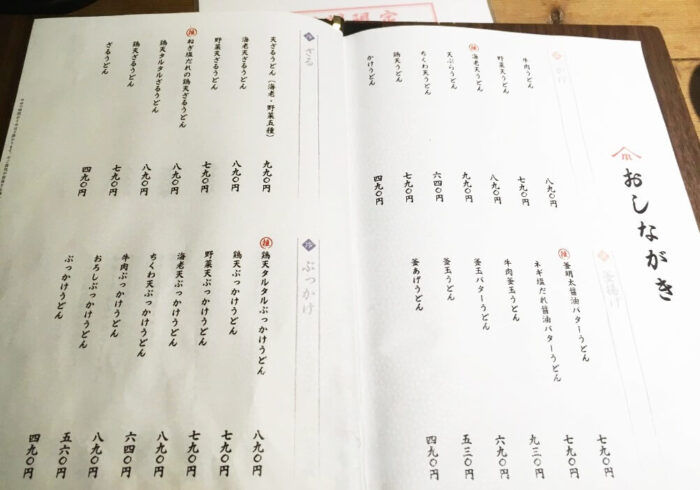 正統派うどんもあるが、ネギ塩だれ醤油バターうどんや鶏天タルタルぶっかけうどんなど、どちらかと言えば創作系の変わりうどんが多い。