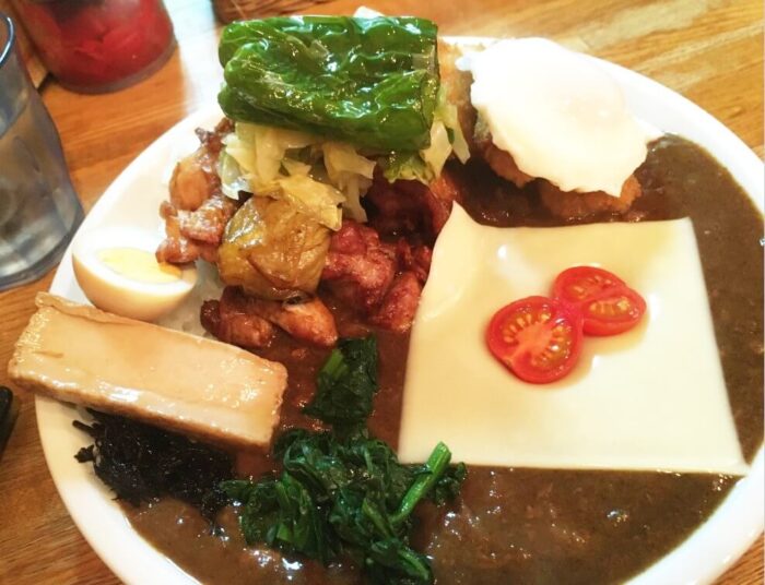 キーマカレーは結構スパイシーなので、チーズや温泉玉子でちょうどまろやかになり、辛いものがそんなに得意でなくても美味しく食べ進められるはず。