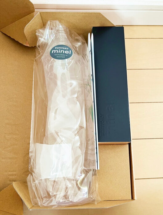 中身は専用のペットボトル(1.5L)1本とミネルが6個入っている。